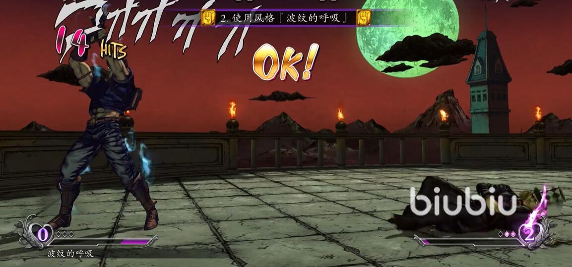 當(dāng)羅伯特被擊倒的時候,玩家們需要掌握好時機(jī),立馬使用波紋呼吸來提高怒氣值的充能,這樣就可以更快的比敵人完成必殺技的準(zhǔn)備。同時,羅伯特每一次起身,都會對周圍發(fā)動一次進(jìn)攻,玩家們需要迅速遠(yuǎn)離來消化掉敵人的進(jìn)攻,隨后繼續(xù)拉遠(yuǎn)距離使用波紋呼吸來提升怒氣。