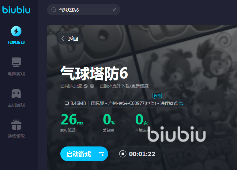 biubiu的加速效果隨時(shí)都能在頁面上查看,它擁有智能節(jié)點(diǎn)和無感切換等優(yōu)勢。大家想要結(jié)束氣球塔防6,然后開啟新的游戲,可以直接點(diǎn)擊新游戲加速,系統(tǒng)會(huì)自動(dòng)切換到新游戲上面,節(jié)省很多步驟,讓加速更加高效。系統(tǒng)會(huì)自動(dòng)把加速過的游戲添加到本地游戲庫當(dāng)中,大家如果想要找回很久沒登錄的游戲賬號(hào),不妨來biubiu重新加速一下,這樣就能看到以前玩的是什么區(qū)服,也方便大家回憶起賬號(hào)。
