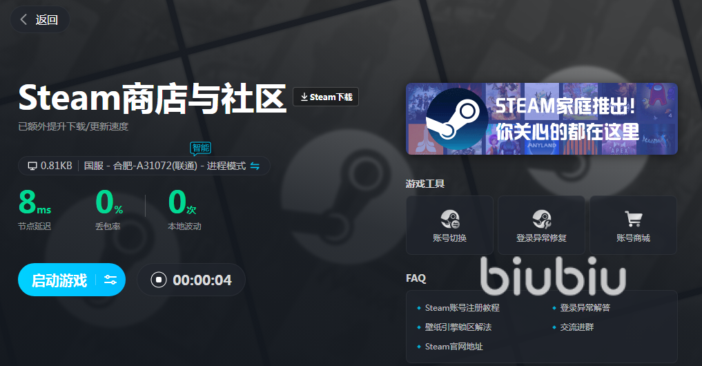 為了確保大家在steam中能夠暢享流暢、穩(wěn)定的游戲體驗(yàn),強(qiáng)烈推薦打擊使用biubiu的加速器。它采用先進(jìn)的網(wǎng)絡(luò)優(yōu)化技術(shù),能夠顯著降低游戲時(shí)網(wǎng)絡(luò)的延遲問題,還能夠減少卡頓和黑屏的現(xiàn)象,讓我們的每一次點(diǎn)擊都能及時(shí)捕捉和響應(yīng),貓咪畫面變化起來也無卡頓。