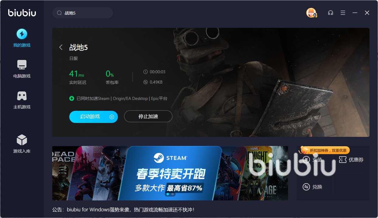 剛剛提到了biubiu加速器的游戲庫,值得說的是,biubiu加速器的游戲庫中可提供加速的游戲非常多,且不止包含戰(zhàn)地5這一個槍戰(zhàn)種類的游戲,玩其他類型游戲的小伙伴們下載biubiu加速器也可以在其中找到適合自己的游戲來進(jìn)行加速。