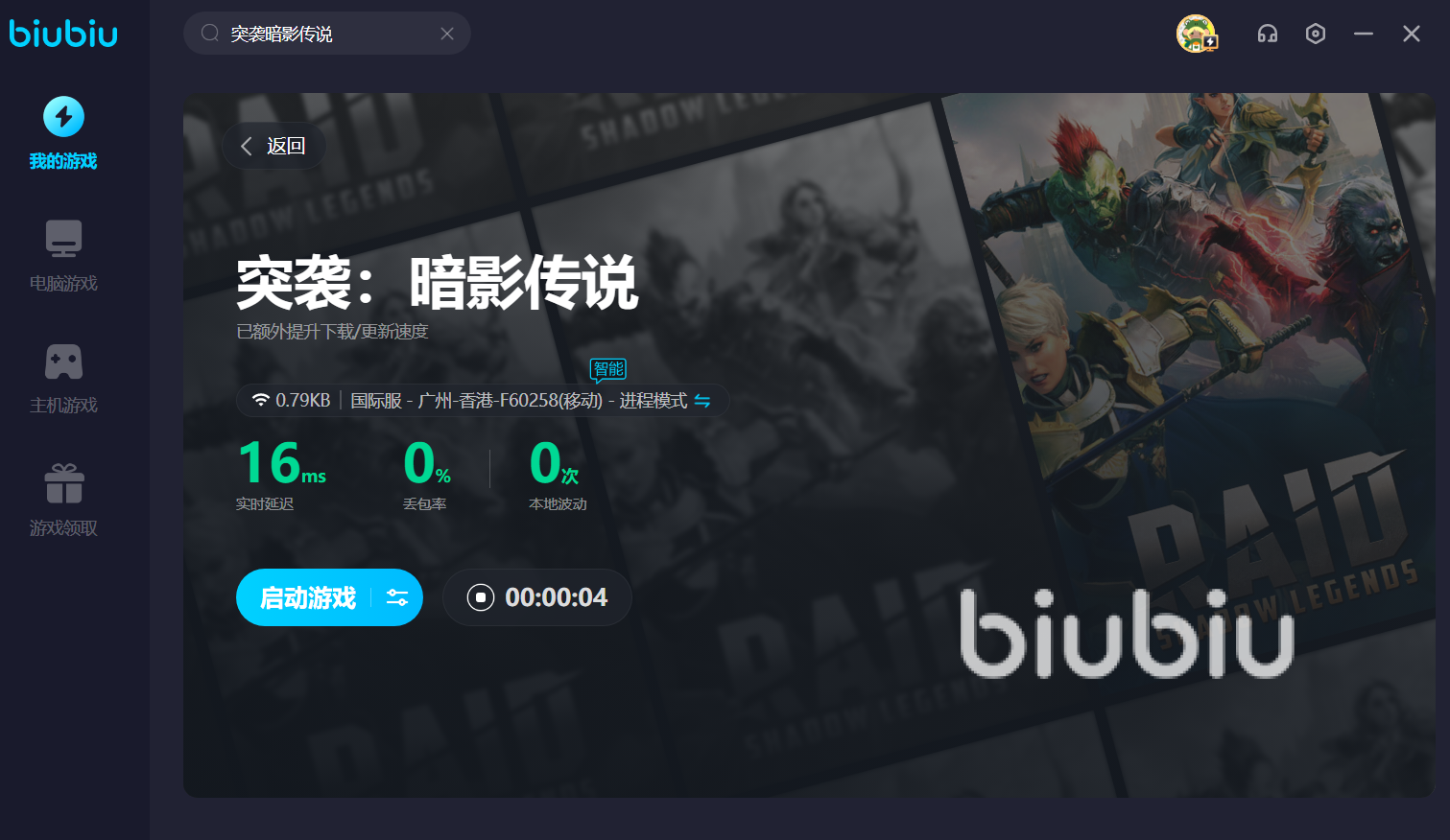 在biubiu加速器內(nèi),首頁搜索突襲暗影傳說的游戲名字,點(diǎn)擊一鍵加速即可,體驗(yàn)簡單快捷的游戲加速。同時(shí),歷史加速過的游戲會自動(dòng)加入“我的游戲”中,方便大家下次一鍵打開。biubiu還經(jīng)常有限免活動(dòng),用戶可以體驗(yàn)標(biāo)“限免”角標(biāo)的游戲的加速。