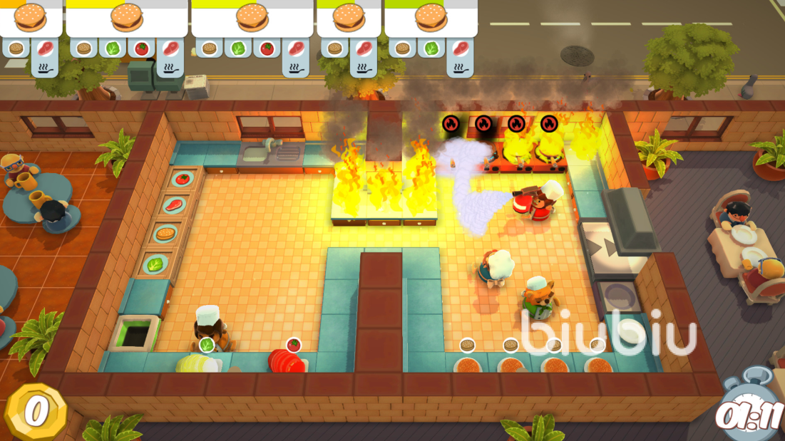 1~4名玩家在胡鬧廚房游戲中開始多人混戰(zhàn),其實也算得上是合作,在各種移動的廚房上,需要完成客人爆發(fā)前的各種美味訂單,除了準(zhǔn)備菜刀和廚師之外,還要準(zhǔn)備一顆可以處理各種緊急情況的心,輕度的操作可以特別配合兩個人的默契程度,但這款游戲為什么被玩家們戲稱為分手廚房,因為沒有耐心的話是很容易吵架的。