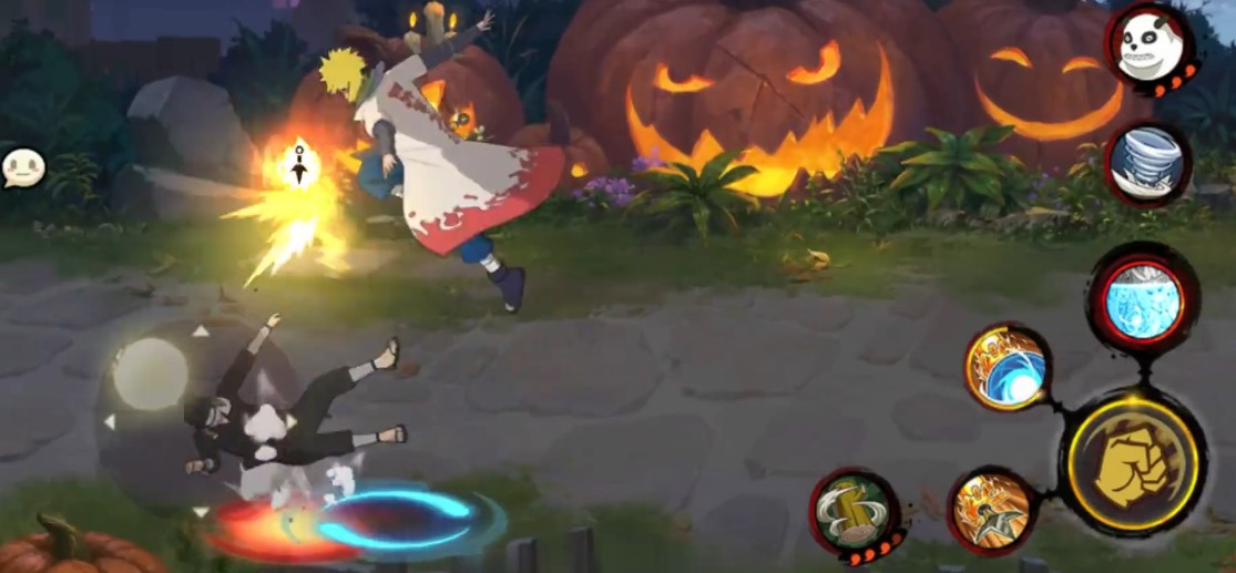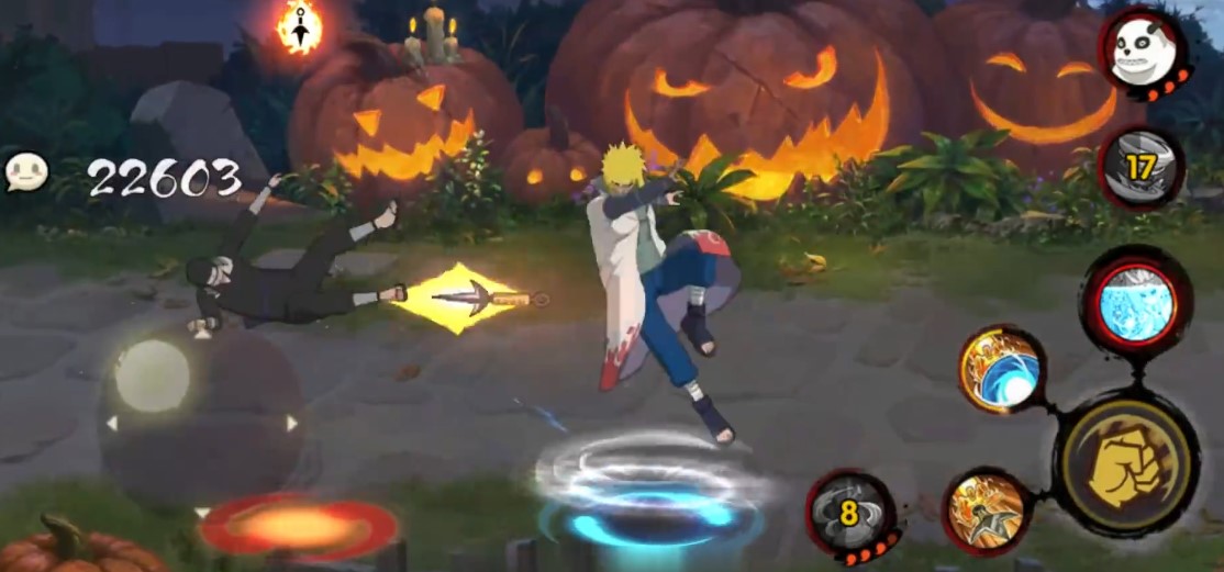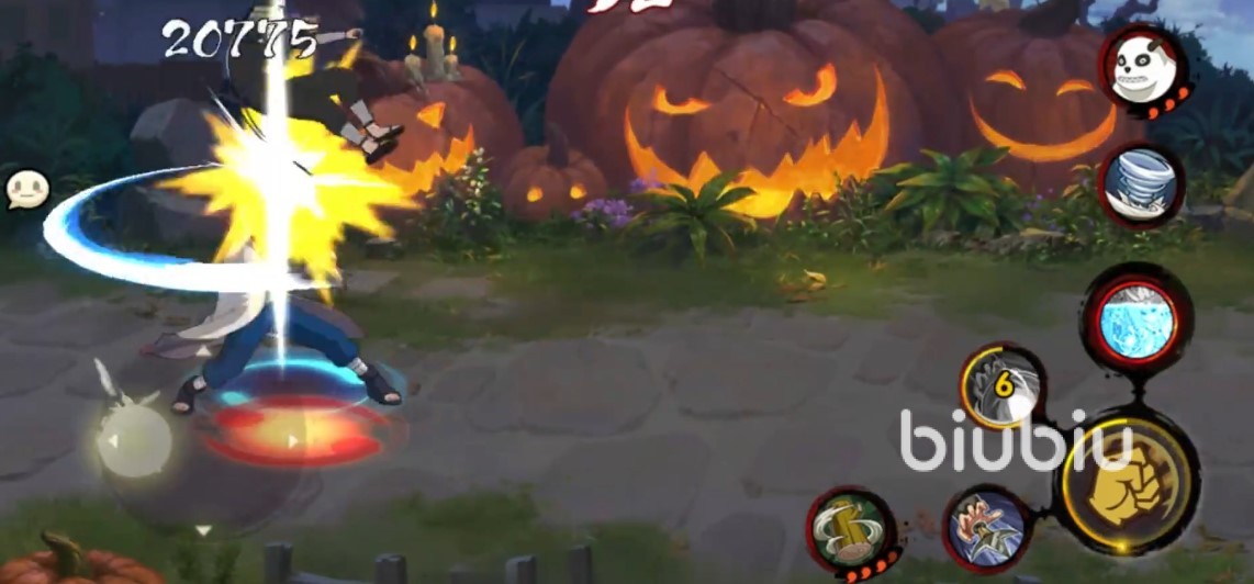 三戰(zhàn)技:扔出一把苦無(wú),當(dāng)這個(gè)苦無(wú)命中對(duì)手后會(huì)直接瞬移到敵方單位的上方,隨后手中出現(xiàn)一個(gè)巨大的螺旋丸并向下碾壓,傷害和攻擊范圍都非常廣。