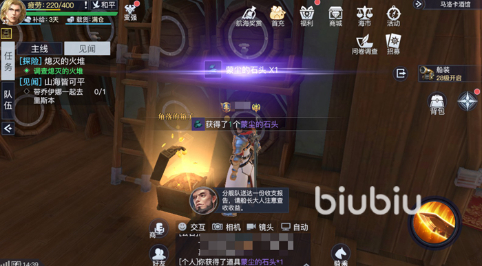在馬洛卡這個區(qū)域場景內(nèi)一共有兩個隱藏寶物,想要找到這兩個隱藏寶物的位置還是比較困難的,但是查看今天小編分享的攻略之后,就能夠輕松獲取這兩個隱藏的寶物了。第一個寶物在酒館場景內(nèi),酒館的位置就在碼頭傳送的東北面多一點。進入酒館之后我們往左邊方面走,在這里可以看到角落的箱子,打開之后就可以獲取第一個隱藏道具蒙塵的石頭。