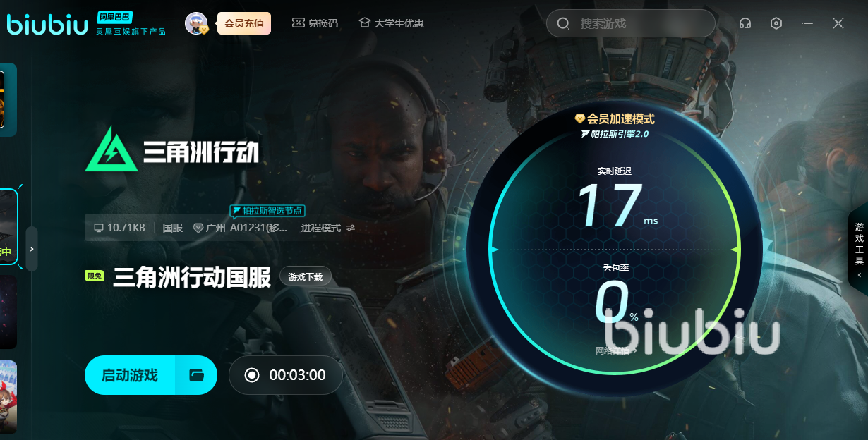 玩三角洲行動時要是卡頓的話,就不利于你的行動。有了biubiu后,才能解決卡頓問題,這樣便可靈活制定好戰(zhàn)術,并將其實施。目前該游戲國服加速限免,要是大家想玩國際服的話,新用戶可領取24H的免費加速。此外,新老用戶也可憑借【biubiu不卡頓】,便可額外領取三天免費加速。若是在與敵人交火時延遲高的話,就很容易將自己的位置暴露在所有敵人面前。用了加速器后,就能更快的解決戰(zhàn)斗,并及時隱藏好身形。