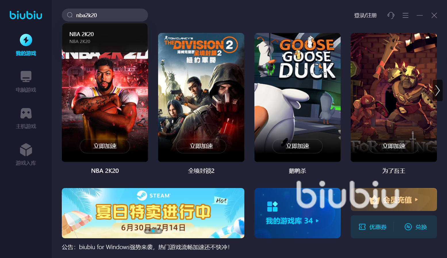biubiu物美價(jià)廉,使用體驗(yàn)好。它推出了“新用戶前24小時(shí)免費(fèi)”的長(zhǎng)期活動(dòng),這一福利非常好,玩家們一定要把握前24小時(shí)的免費(fèi)使用期,感受一下軟件的便利——一鍵智能加速模式。它限時(shí)活動(dòng)也在開啟中,為主機(jī)類游戲?qū)崟r(shí)加速,現(xiàn)在已經(jīng)覆蓋了STEAM、PS等平臺(tái)。