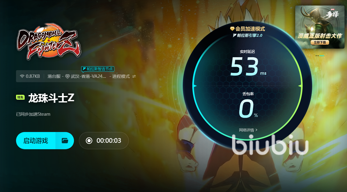 相信很多玩家在體驗(yàn)過這款游戲后,對(duì)這個(gè)稱號(hào)絕對(duì)會(huì)非常認(rèn)同,在眾多龍珠系列游戲中,龍珠斗士Z無論是在劇情人物還原程度以及各個(gè)玩法模式方面都非常出色。例如想要體驗(yàn)劇情,就去參加故事模式,感受精彩小說原著,如果想要進(jìn)行格斗,就去街機(jī)模式中進(jìn)行對(duì)戰(zhàn)。還有通過網(wǎng)絡(luò)連接。才能進(jìn)行的排位賽等。擁有豐富的多人聯(lián)機(jī)對(duì)戰(zhàn),這對(duì)于想要展現(xiàn)自身實(shí)力的玩家來說,絕對(duì)是一款不可缺少的游戲。很多玩家表示游戲運(yùn)行過程中容易出現(xiàn)卡頓,甚至直接被卡死,其實(shí)大多數(shù)都是在聯(lián)機(jī)時(shí)候才會(huì)明顯。解決方法無需去大動(dòng)干戈,只需要?jiǎng)觿?dòng)手指,下載一個(gè)biubiu去打開游戲客戶端就能輕松解決了。值得一提的是,現(xiàn)在新注冊(cè)biubiu號(hào),立刻就得24小時(shí)加速時(shí)間,介紹再多也不如親身體驗(yàn)一下更為實(shí)在。