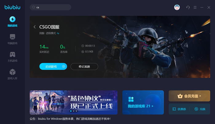 大家打開(kāi)biubiu之后搜索cs,可以看到目前找不到專門用于加速cs的入口,但其實(shí)通過(guò)加速系列最新作品CSGO也可以得到為cs提速的效果。細(xì)心的玩家想必已經(jīng)注意到了,biubiu加速cs國(guó)服是免費(fèi)的,如果有玩國(guó)際服的小伙伴,可以在領(lǐng)取新人福利(新用戶贈(zèng)送24小時(shí)會(huì)員)之后去嘗試一下,然后再參加活動(dòng)充值,會(huì)劃算很多!