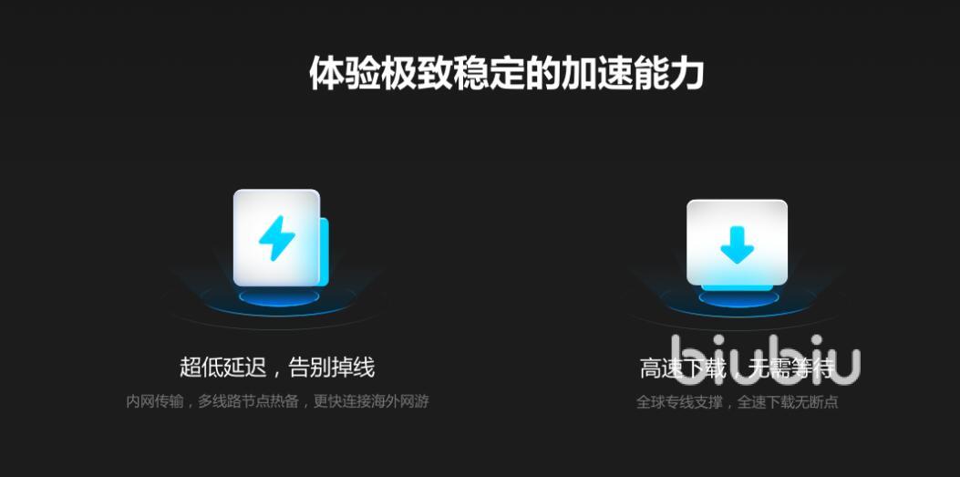 隨著游戲內(nèi)容的豐富、游戲畫質(zhì)的提升,游戲也變得越來(lái)越大,想要短時(shí)間完成游戲下載,可以使用biubiu加速器,軟件內(nèi)部提供了專線下載加速服務(wù),保證游戲以最高速度下載完成。