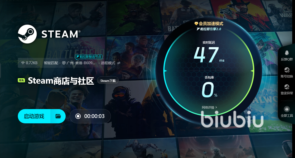 之所以推薦使用biubiu來(lái)解決這些問(wèn)題,是因?yàn)樗哂卸囗?xiàng)自身核心技術(shù),首先是擁有專線連接技術(shù),這樣可以幫助保持連接過(guò)程穩(wěn)定。從用戶到運(yùn)營(yíng)服之間數(shù)據(jù)交換很通暢,這樣就可以避免卡頓等情況出現(xiàn)。再加上自身使用的是先進(jìn)加速引擎,還配有節(jié)點(diǎn)切換等技術(shù),這些技術(shù)綜合起來(lái)應(yīng)用,就可以使用戶網(wǎng)絡(luò)始終保持穩(wěn)定,不會(huì)受到波動(dòng)影響,對(duì)于服務(wù)器連接也更加流暢,玩起游戲來(lái)就會(huì)輕松很多。針對(duì)丟包率高的問(wèn)題,還有著弱網(wǎng)對(duì)抗功能,通過(guò)一系列技術(shù)來(lái)降低丟包率。這將反映在玩家玩游戲的時(shí)候,就能夠始終保持流暢。