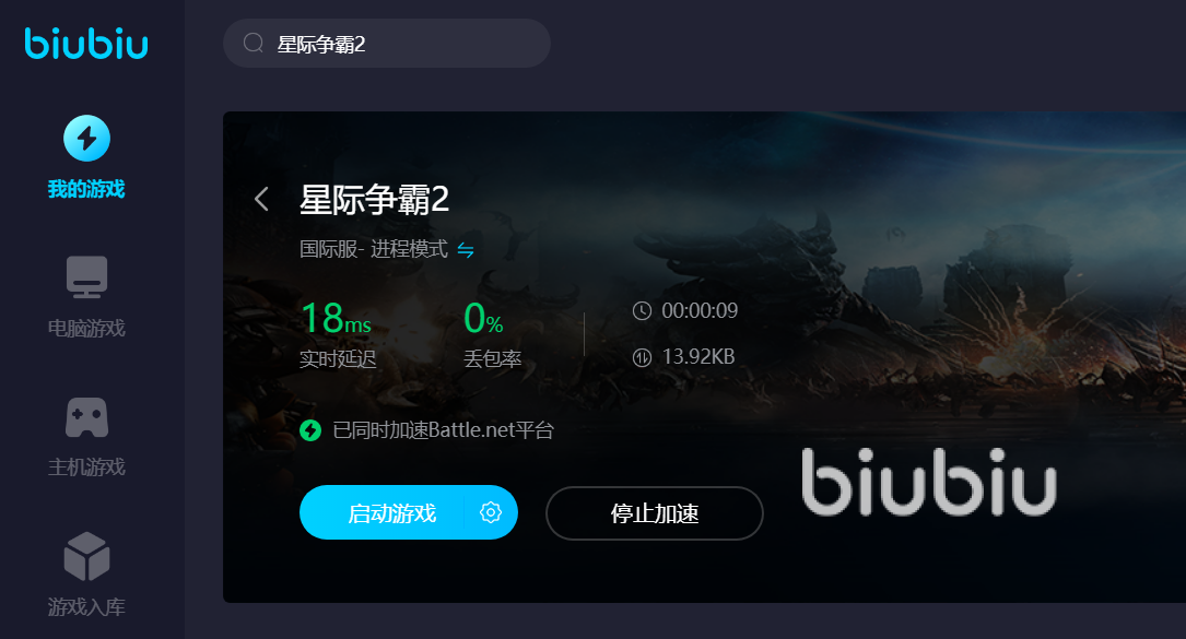 使用biubiu對(duì)游戲進(jìn)行加速也很簡(jiǎn)單,玩家們只需用手機(jī)號(hào)注冊(cè)登錄,然后完成實(shí)名制的認(rèn)證,注意未成年的玩家暫時(shí)不能體驗(yàn)哦!接下來(lái)在biubiu主頁(yè)搜索“星際爭(zhēng)霸2”,選擇你游戲賬號(hào)所在的區(qū)域,然后點(diǎn)擊一鍵加速即可打開(kāi)游戲暢玩。各位玩家需要留意的是,游玩過(guò)程可以縮小biubiu加速器在后臺(tái),但是不要退出,不然就享受不到加速效果。