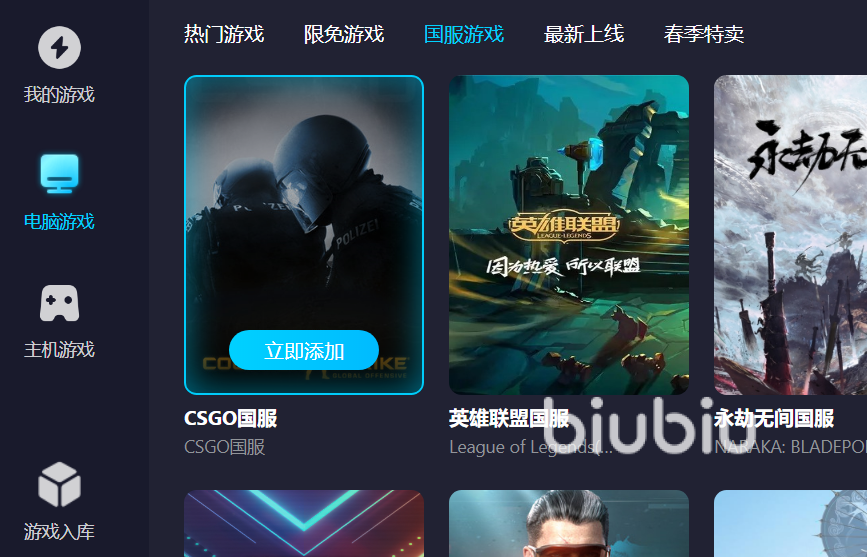 另外大家在平臺上可以發(fā)現(xiàn)整體設(shè)計簡約,分為我的游戲、電腦游戲、主機(jī)游戲還有游戲入庫這四個大功能,一般我的游戲就是大家搜索后添加進(jìn)來的,隨時可以啟動,方便大家進(jìn)行查找,加速更便捷。電腦游戲種類就很豐富了,大家可以在里面找到自己想要的游戲。主機(jī)游戲顧名思義就是支持到Switch這塊的大部分游戲了。平臺內(nèi)游戲內(nèi)容很多很豐富,大家也不用一直盯著一款游戲玩,時不時在平臺內(nèi)換換口味,還是有不一樣的體驗感受哦。