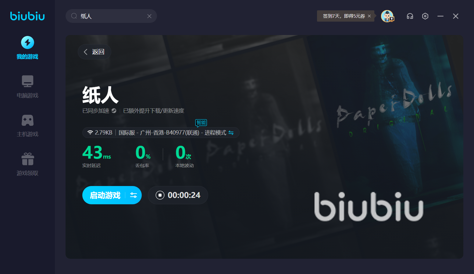 用biubiu加速器之后給小編最直觀的感受就是進入游戲速度變的更快速更加順暢了,在游戲中的轉場也更加流暢,npc的突然出現(xiàn)也更加了絲滑,給了小編更深刻的體驗。關于紙人游戲卡頓問題,使用biubiu能幫大家解決,大家直接點擊上方的鏈接進行下載來優(yōu)化游戲的體驗感,更真切的感受真實的線上密室逃脫。