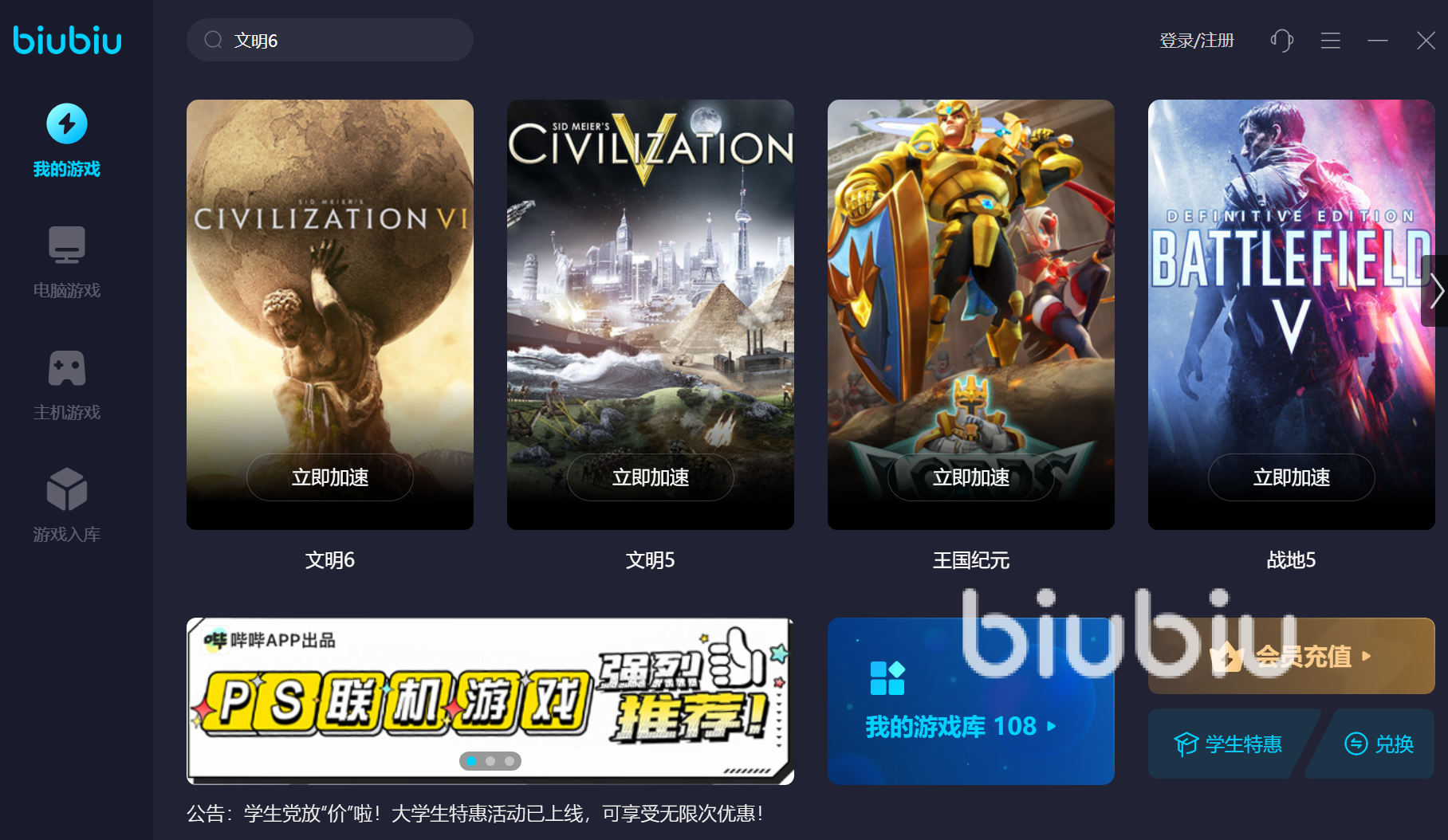 新用戶贈(zèng)送24小時(shí)免費(fèi)加速,所以不用糾結(jié)價(jià)格的問題,應(yīng)該沒有平臺(tái)是先試用后續(xù)費(fèi)的吧,真的是幾乎沒有。這也是給大家準(zhǔn)備了一個(gè)了解biubiu加速器的機(jī)會(huì),這24小時(shí)玩家們肯定不會(huì)就玩一款游戲呀,這里還有資源豐富的游戲庫(kù),直接搜就能找到你喜歡的類型,都是可以嘗試的。