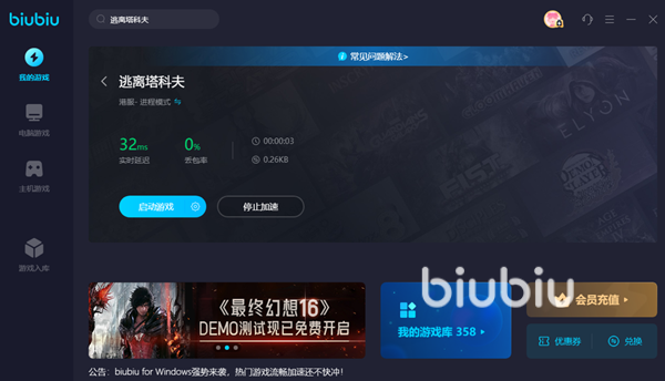 正如之前所說,就算選擇延遲低的服務(wù)器,我們大部分的玩家連接還是會比較卡頓,想要暢快游玩需要借助加速器。今天為大家推薦的biubiu就是一款大受好評的網(wǎng)游加速工具,新用戶點擊上方鏈接下載安裝能夠領(lǐng)取24小時全平臺的會員,在這個時間段我們就能夠測試加速逃離塔科夫以及其他游戲的效果,然后參加首充的折扣活動,這樣就能夠用很低的價格獲取服務(wù)權(quán)限。