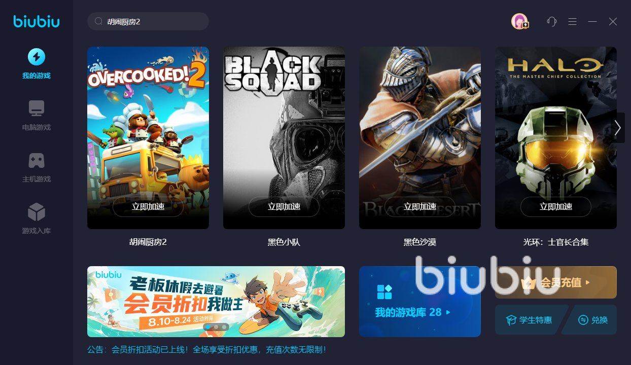 分手廚房2目前多端全都同步上線了,而biubiu目前對(duì)steam、暴雪平臺(tái)的游戲是限時(shí)免費(fèi)加速的,也就是說(shuō)不需要花錢就可以和小伙伴們享受暢通的游戲流程,并且現(xiàn)在立刻注冊(cè)biubiu,新用戶還能享受到24小時(shí)的免費(fèi)體驗(yàn)時(shí)長(zhǎng),一定不要錯(cuò)過(guò)哦!