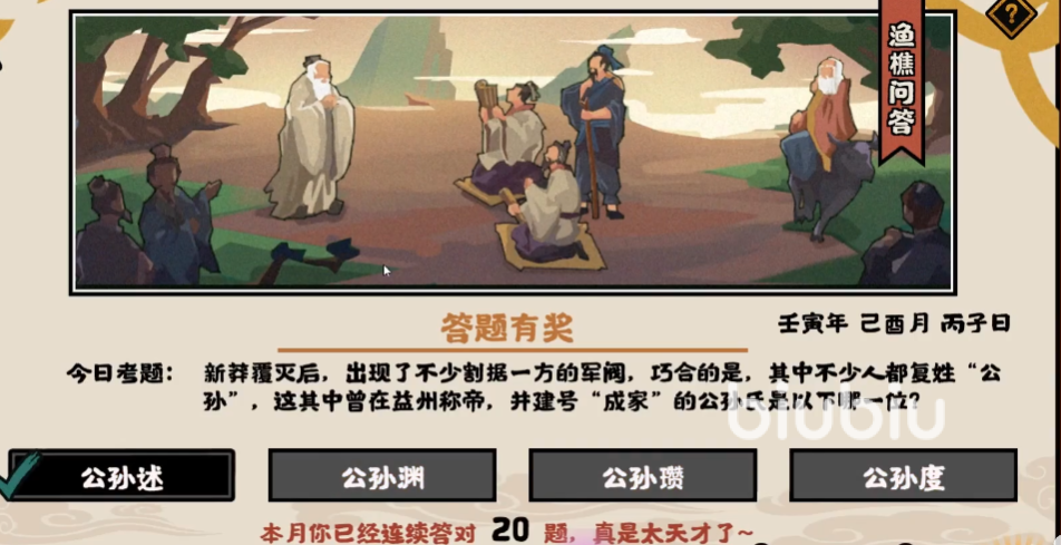 最后公孫述自然是攻打成功了的,所以通過(guò)這個(gè)故事大家對(duì)這個(gè)人物有了解到更多了嗎,以上就是無(wú)悔華夏漁樵問(wèn)答9.20是什么的全部?jī)?nèi)容,祝各位玩的開心。