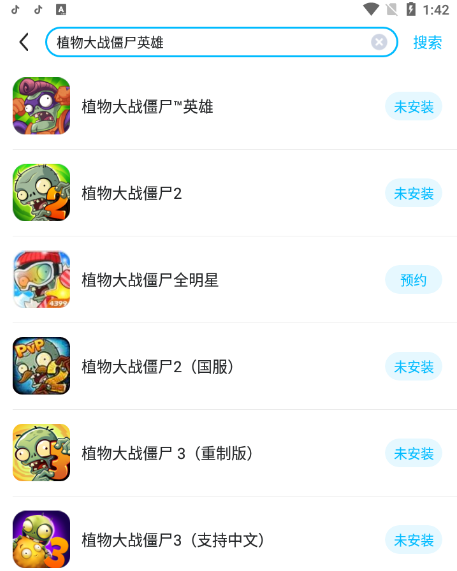 另外想要下載這款加速器也是不難的,大家只需要通過瀏覽器來搜索,就可以找到它們的官網(wǎng)了,同時也可以對加速器進行下載,在大家下載成功以后,它會自動識別用戶手機之中的游戲,并通過它來為大家實現(xiàn)加速,如果手機里面沒有的話,可以直接在biubiu的游戲庫里面搜索找到,比如植物大戰(zhàn)僵尸英雄,只需要搜索一下,大家就可以看到,并且下載它。