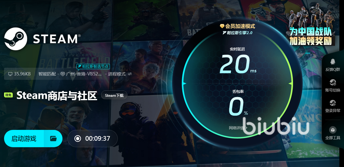 大家愛用biubiu的一個重要原因是它的加速范圍很廣,大部分游戲都能加速,經(jīng)常玩steam和Epic的玩家更是離不開它。想玩什么游戲就在資源里面搜索,每款游戲都配置了一個加速按鍵,通過智能節(jié)點分配線路,現(xiàn)在還能用【biubiu不卡頓】領(lǐng)取到三天免費加速,時長足夠大家快樂暢玩了。