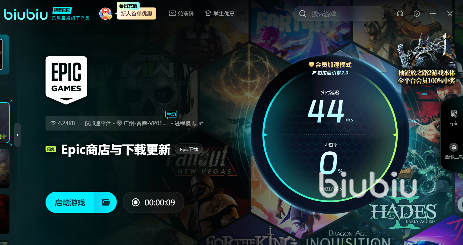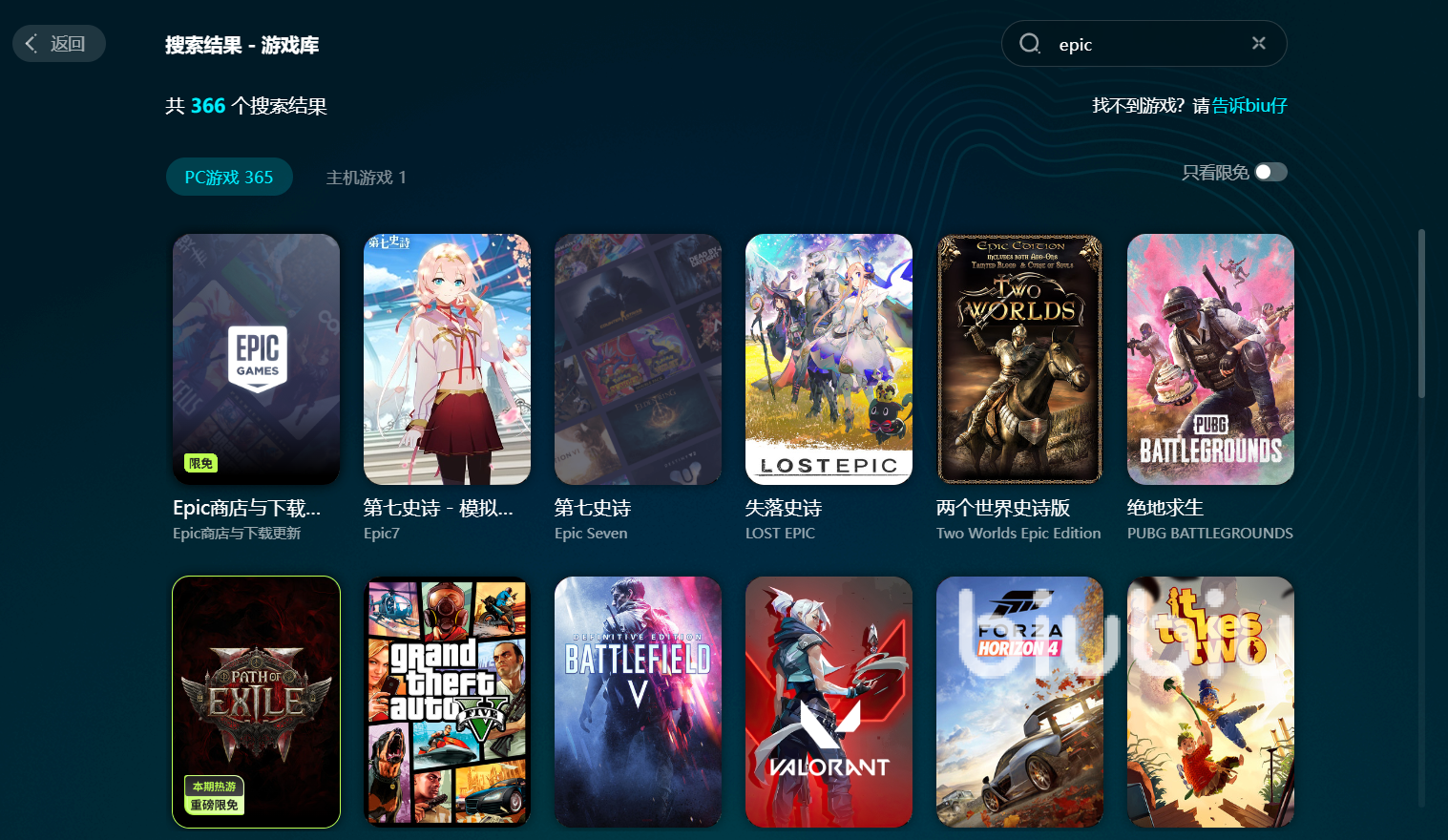 用上biubiu不管是新作還是老游戲,都能輕松搞定。它不僅能對游戲商店提速,還能加速游戲本身,一個軟件搞定所有,省得再去下載一堆其他軟件,同時,它的啟動速度超快,點開頁面,搜一搜EPIC或者你想玩的游戲,立馬就能開戰(zhàn)。還可以把它添加到游戲庫,下次直接在這里找。