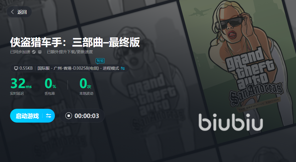 那么大家在體驗(yàn)這款游戲時(shí),如果發(fā)現(xiàn)自身所在的城市畫面加載有著明顯的延遲,或者是畫面還時(shí)不時(shí)的卡頓,那肯定是得去使用加速工具的,所以在看完了圣安地列斯閃退怎么辦的介紹以后,不如就點(diǎn)擊文中的鏈接來安裝biubiu進(jìn)行使用吧。