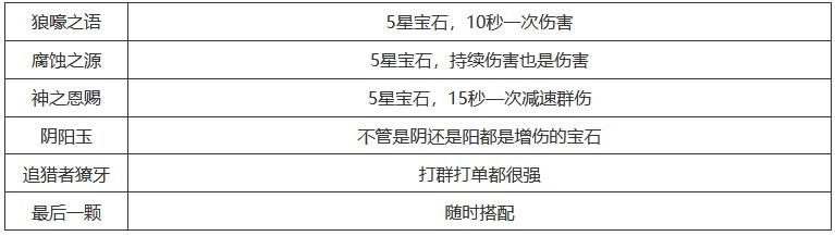大佬的傳奇寶石搭配可選擇為狼嚎之語、腐蝕之源 、神之恩賜、陰陽玉和追獵者獠牙,剩下一個寶石鑲嵌為可以根據(jù)自身喜好選擇。