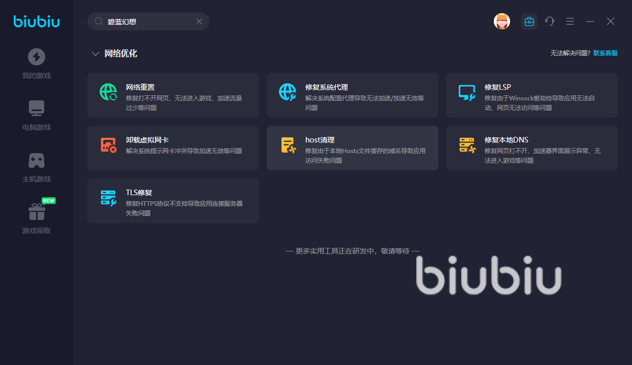 因?yàn)楫吘故切掠螒?,前期難免會(huì)存在一些緩存數(shù)據(jù)異常的情況,而發(fā)生這種問題之后,玩家就需要一次又一次的重復(fù)解決方案,但在biubiu工具箱內(nèi)此類問題都是可一鍵解決的,且能夠解決的問題種類多足夠方便,讓你去應(yīng)對各種新游戲易發(fā)生的問題。