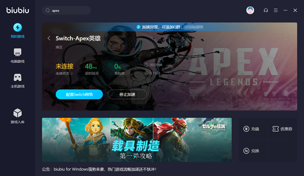 有關(guān)apex總是閃退怎么辦的問題小編就解答到這里了,這款游戲出現(xiàn)閃退主要還是因為網(wǎng)絡(luò)故障導(dǎo)致的,所以要對癥下藥,使用biubiu加速器為游戲進行網(wǎng)絡(luò)優(yōu)化,不僅可以避免出現(xiàn)閃退的情況,還能夠顯著提升游玩過程中的反應(yīng)速度,而且還支持多個平臺版本的游戲,可謂是一舉多得哦!感興趣的話就趕緊下載嘗試吧。