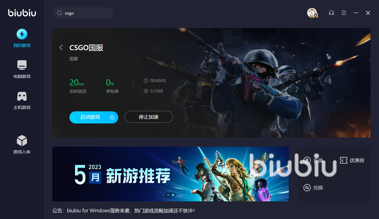 以上就是csgo對(duì)槍卡頓如何解決的具體方法,解決這個(gè)問(wèn)題最多也就是五分鐘的時(shí)間,從客戶端下載并搜索游戲找到加速即可,更何況現(xiàn)在csgo國(guó)服也能階段性地免費(fèi)加速,大家可以先趁這段時(shí)間好好體驗(yàn)一下biubiu加速器為游戲帶來(lái)的改變。