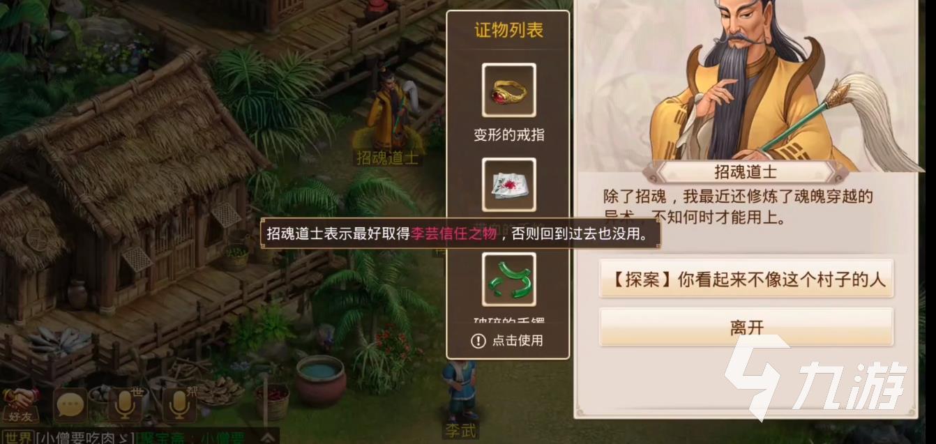 帶著這個(gè)手鐲,去找招魂道士,接著來(lái)到三天前,前往被害者的家里,她家就在地圖左側(cè),而之前拿到的手鐲就能與被害者的靈魂溝通,溝通完再去找招魂道士;