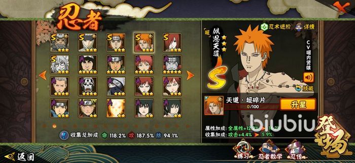 這款游戲的養(yǎng)成玩法非常多,首先每一個忍者抽到之后可以解鎖全技能,但是獲得碎片可以提升其星級,讓屬性得到大幅度的提升,雖然pvp玩法當(dāng)中有著屬性平衡效果,不過組織對戰(zhàn)就是純看大家的戰(zhàn)斗力,土豪玩家的小技能都能秒人。