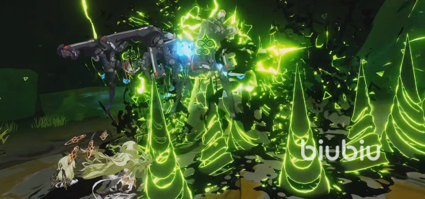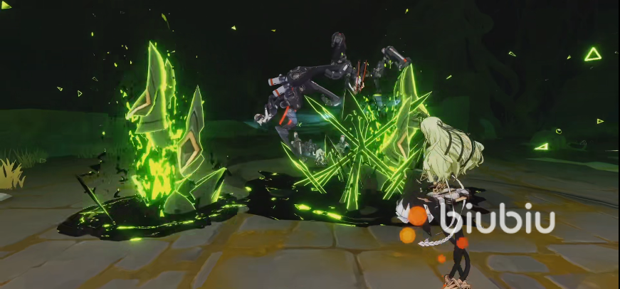 新角色噬界之蛇的存在著多種分支攻擊,但是由于她有著獨特的起源之種機制,因此實戰(zhàn)中的連招并不算復(fù)雜。游戲中噬界之蛇在戰(zhàn)斗時可以獲得名為“起源之種”的道具,就是上圖中屏幕下方的綠色種子,噬界之蛇在釋放分支技能時需要消耗起源之種,而她的強化普攻,普攻第四段以及極限閃避在觸發(fā)時會獲得起源之種,最多獲得三個,這就構(gòu)成了噬界之蛇連招的基本思路。