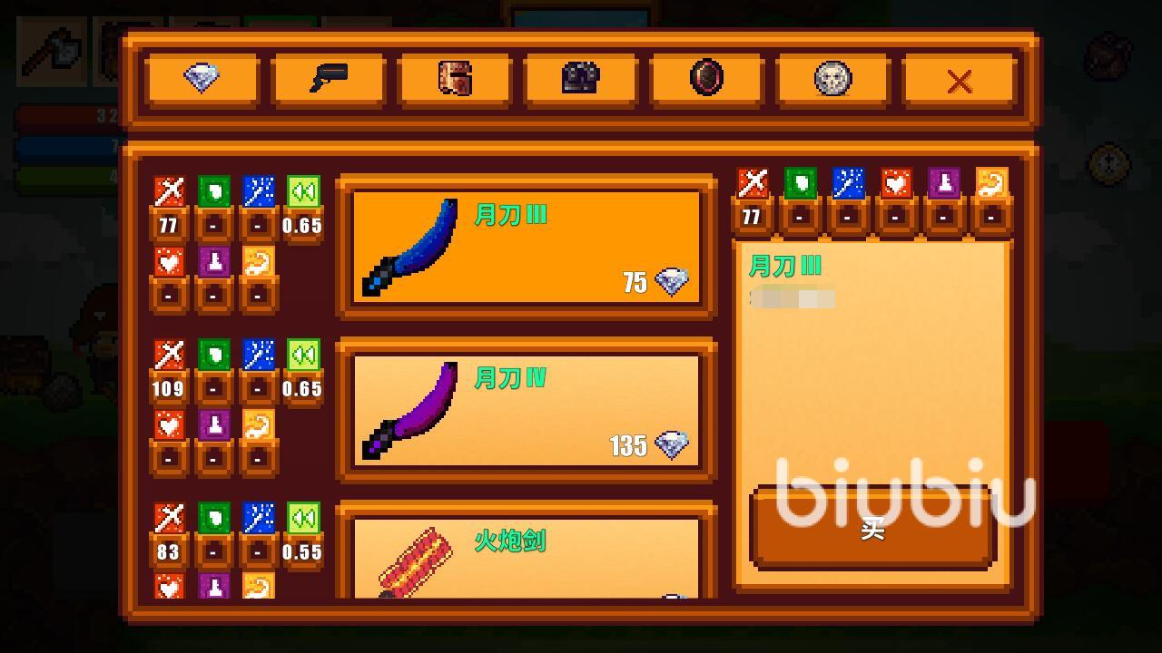 首先,第一種獲取月刀最簡單的方式,主要通過玩家們利用鉆石去進(jìn)行購買。進(jìn)入像素鎮(zhèn)以后,玩家們可以直接找到合成NPC一旁的黑武士,與其對話就可以開啟交易頁面。在交易頁面當(dāng)中,玩家們可以直接找到月刀,不同等級的月刀在售價(jià)上區(qū)別較大,玩家們根據(jù)自身鉆石數(shù)量來選擇即可。