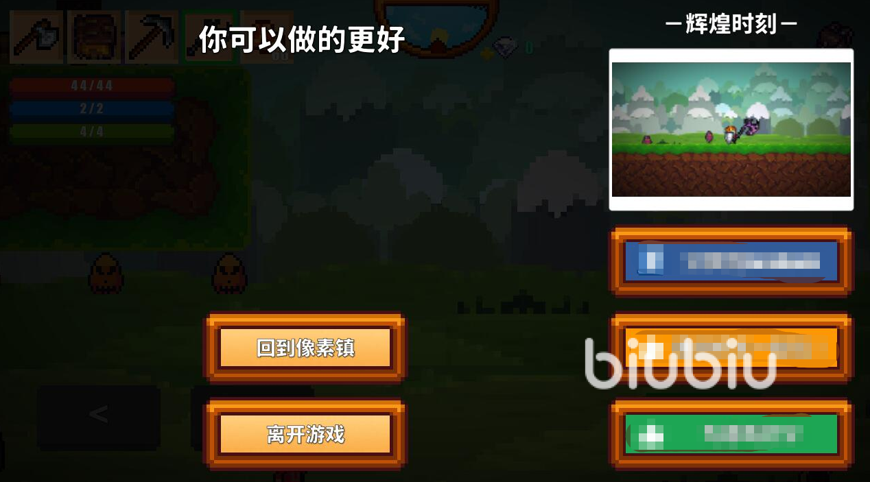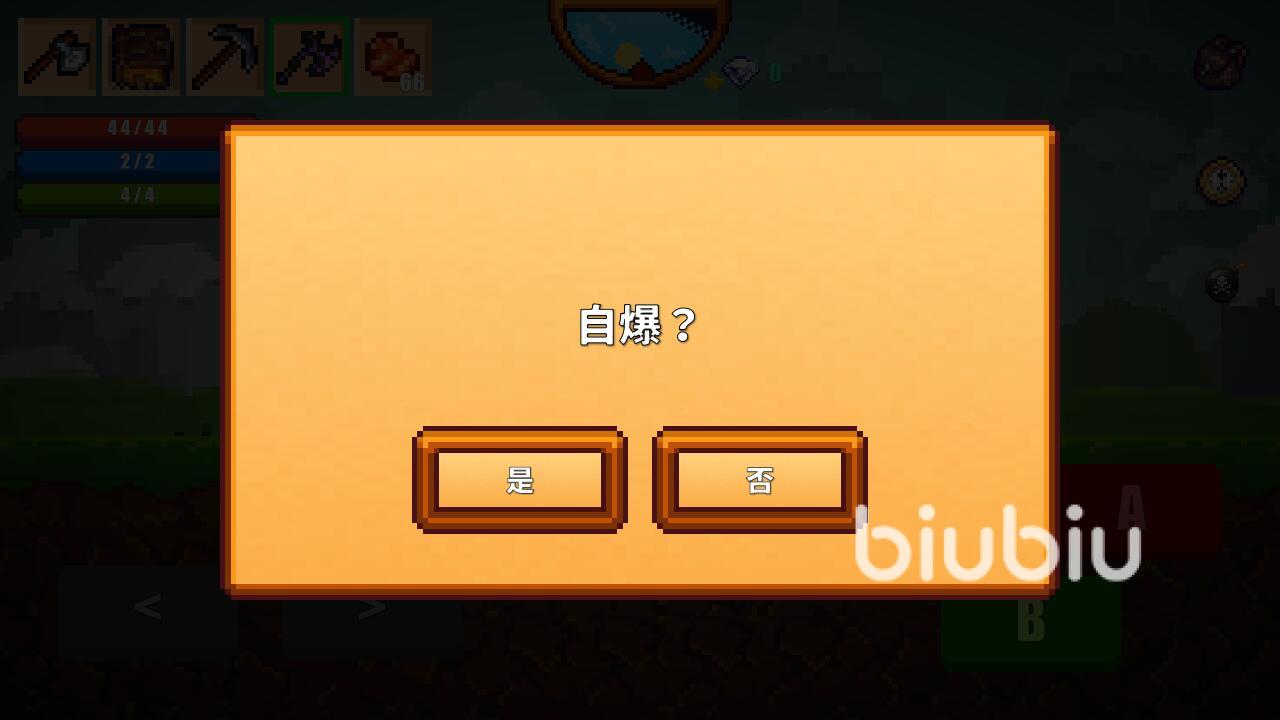 當然,如果已經(jīng)進入到探索地圖內(nèi)的玩家,就需要使用不同的方式,才能夠達到保存游戲的目的。例如當玩家們進入到草原地圖之后,如果在收集材料的過程當中得到了非常稀有的道具,那么就可以直接通過選擇自爆,來重新回到像素鎮(zhèn)并且將游戲保存。這一方式可以有效的讓稀有道具不被刷新掉。
