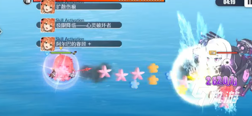 從技能彈幕演示來看艾拉的彈幕非常密集,本身攻擊次數(shù)觸發(fā)的彈幕,各種技能效果彈幕,可以看到同一時間爆發(fā),會有多個技能條,發(fā)射五顏六色的五角星、花花形狀的彈幕?;蛟S可以搭配速射的輕巡炮(針管炮)來打彈幕輸出。