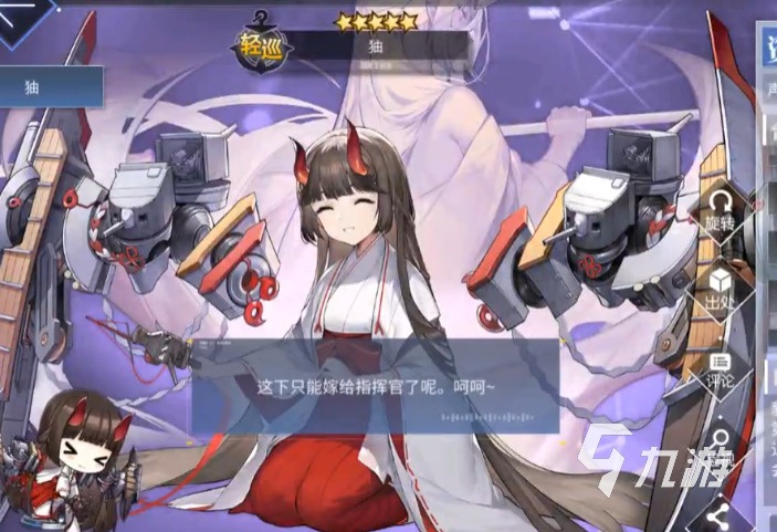 由良驅逐艦,cv為野口琉璃子,限時建造2.5%可以獲取這艘驅逐艦。二星精銳的輕巡艦,耐久度還可以,畫風為巫女風格,感覺很獨特。