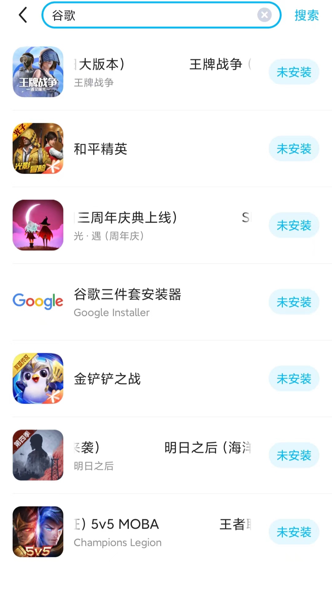 加速完成后,玩家需要再去搜索谷歌三件套,它能幫助大家順利進入游戲。其搜索過程也是在搜索框里打字,大致流程如下圖。