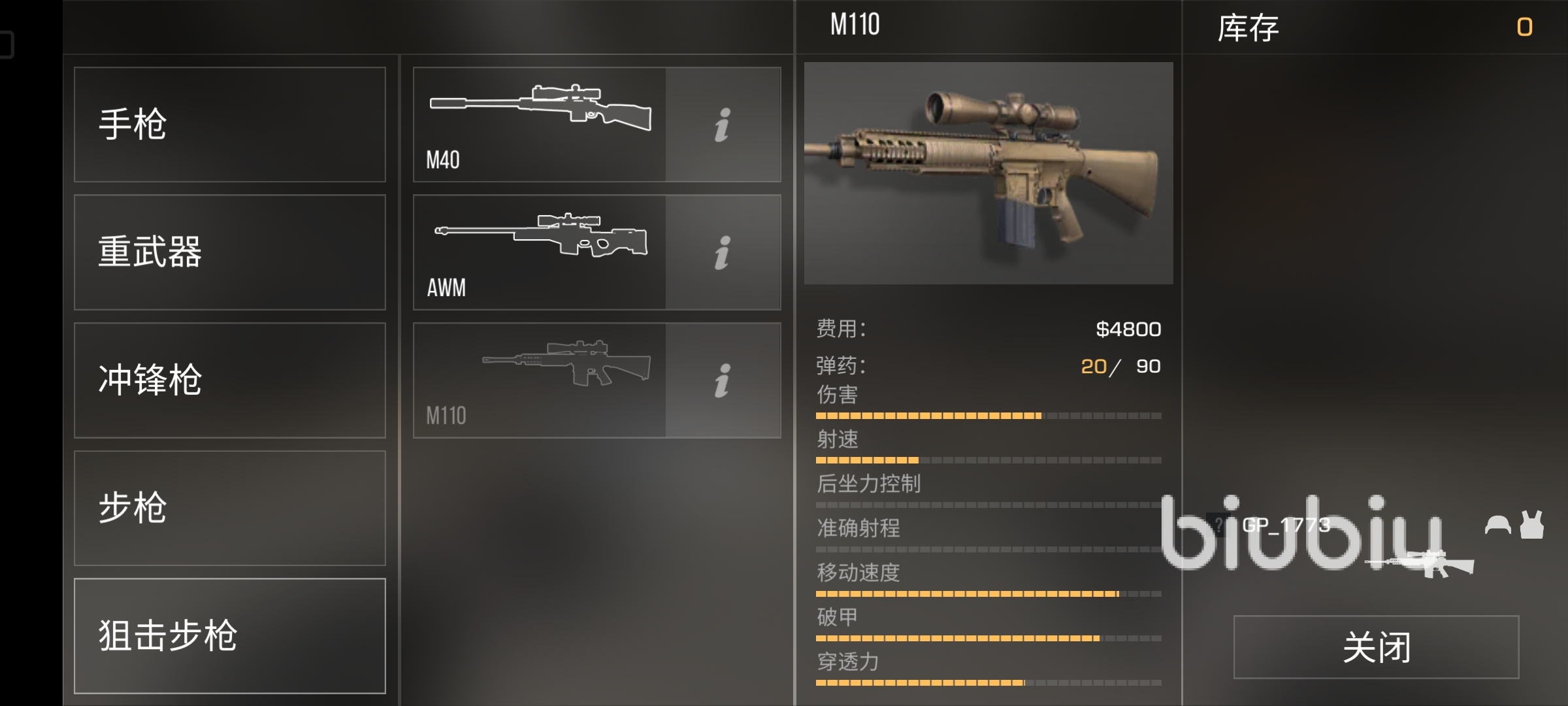 在對峙2中,M110售價4800,是黃色的沙漠涂裝,彈容量為狙擊槍最高:20/90,傷害是中等偏上,低于目前版本的另外兩把狙擊槍,但是比一般的武器更高,射速是所有狙擊槍中最高的一把??傮w來說就是犧牲了攻擊力部分,提高了機動性和連射效率。