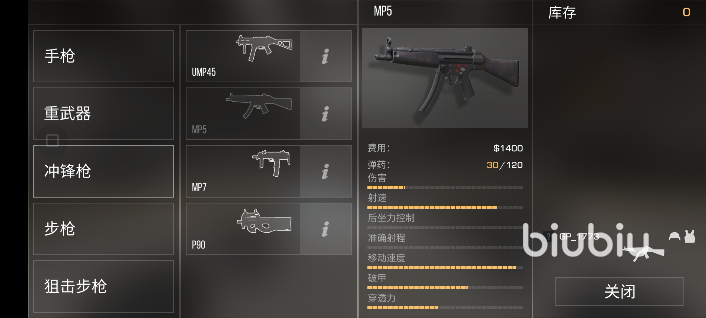在這款游戲中,目前版本我們一共有4款沖鋒槍,分別是:UMP45、MP5、MP7和P90。