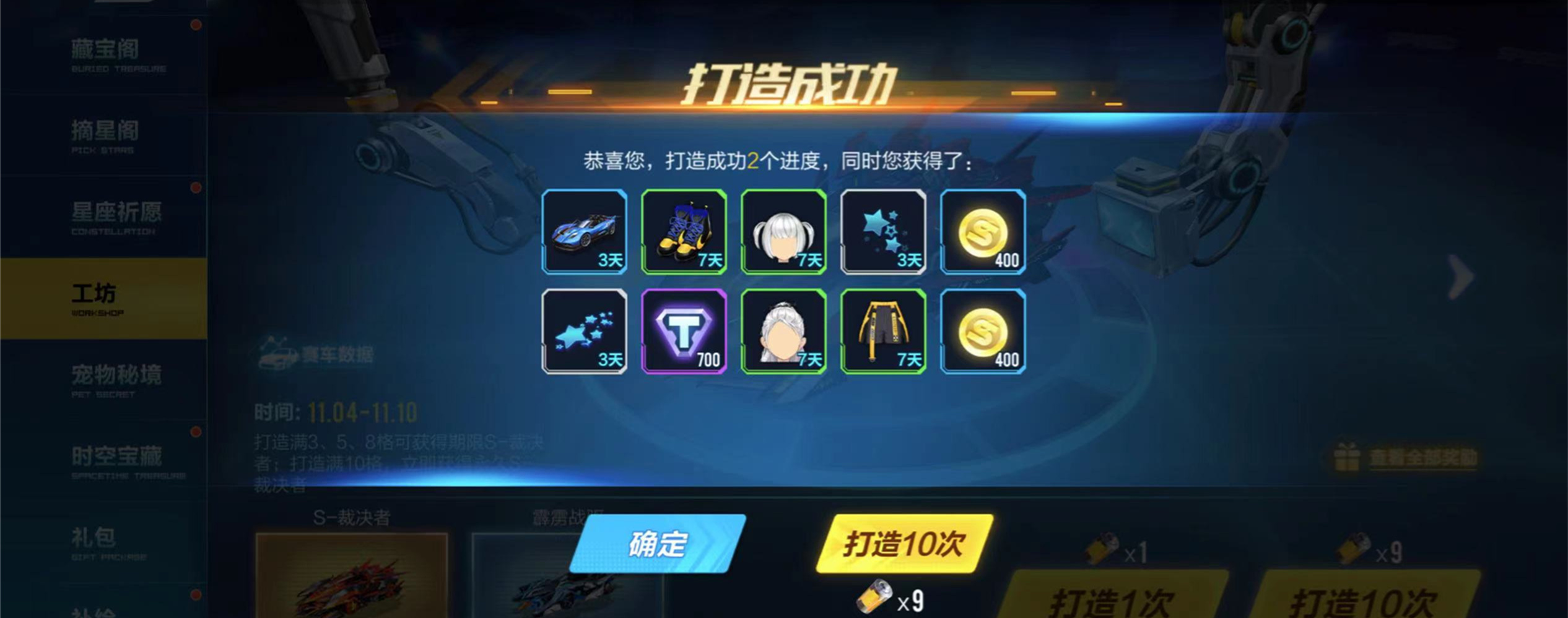 玩家需要用橙光能源來(lái)進(jìn)行抽取裁決者,打造1次需要用1個(gè)橙光能源道具,打造10次可用9個(gè)橙光能源道具,當(dāng)玩家打造滿(mǎn)3,5,8格可以獲得期限S裁決者,當(dāng)玩家打造滿(mǎn)10格時(shí),就可以立即獲得永久S裁決者啦。