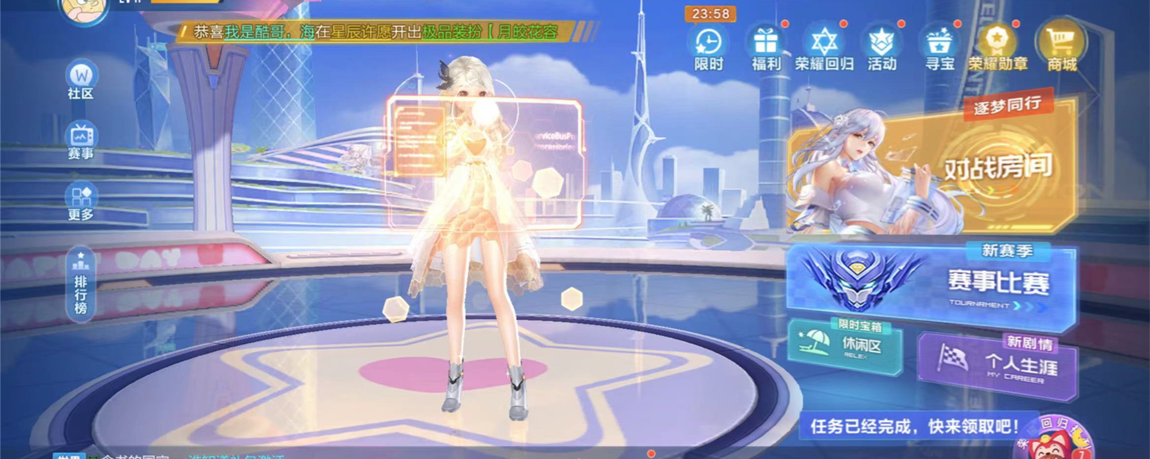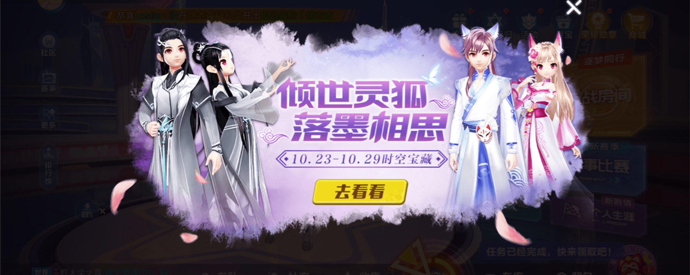 傾世靈狐的獲取方式有兩種方式,第一種方式就是點(diǎn)擊剛進(jìn)入游戲界面中的小彈窗進(jìn)行獲取,有很多新手玩家進(jìn)來就是一頓點(diǎn)關(guān)掉,很容易忘記,第二種方式可在時(shí)空寶藏中獲取,請(qǐng)玩家前往右上角的尋寶按鈕,找到時(shí)空寶藏點(diǎn)擊進(jìn)入就可以。