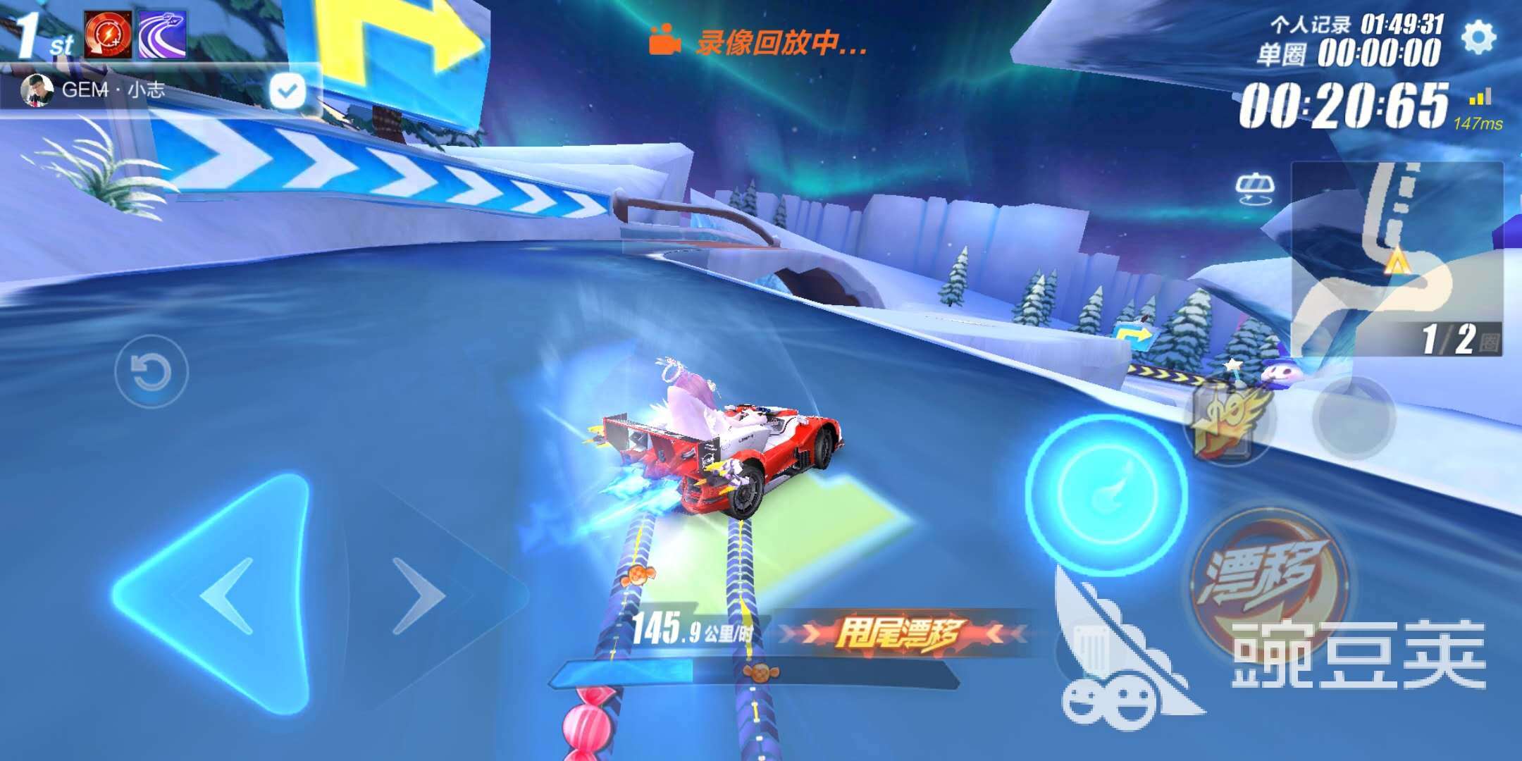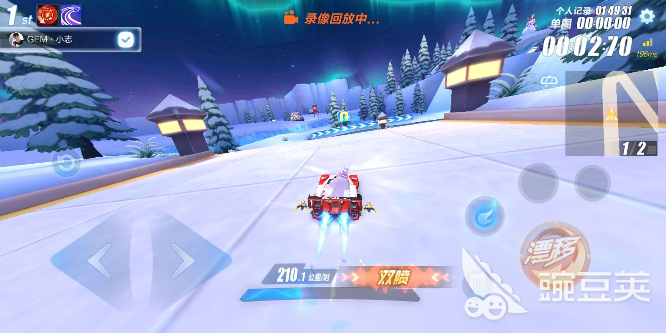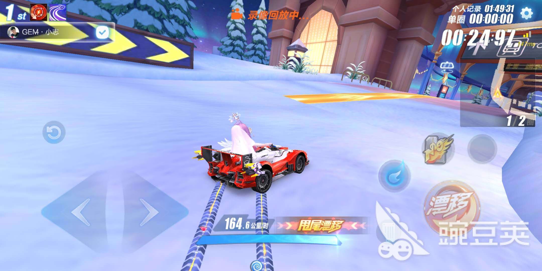 第三步:在近道的地方注意的就是用甩尾漂移銜接雙噴,控制好車子的方向避免車子掉下去,在過程中會(huì)出現(xiàn)空噴、落地噴,一定要及時(shí)按下去。