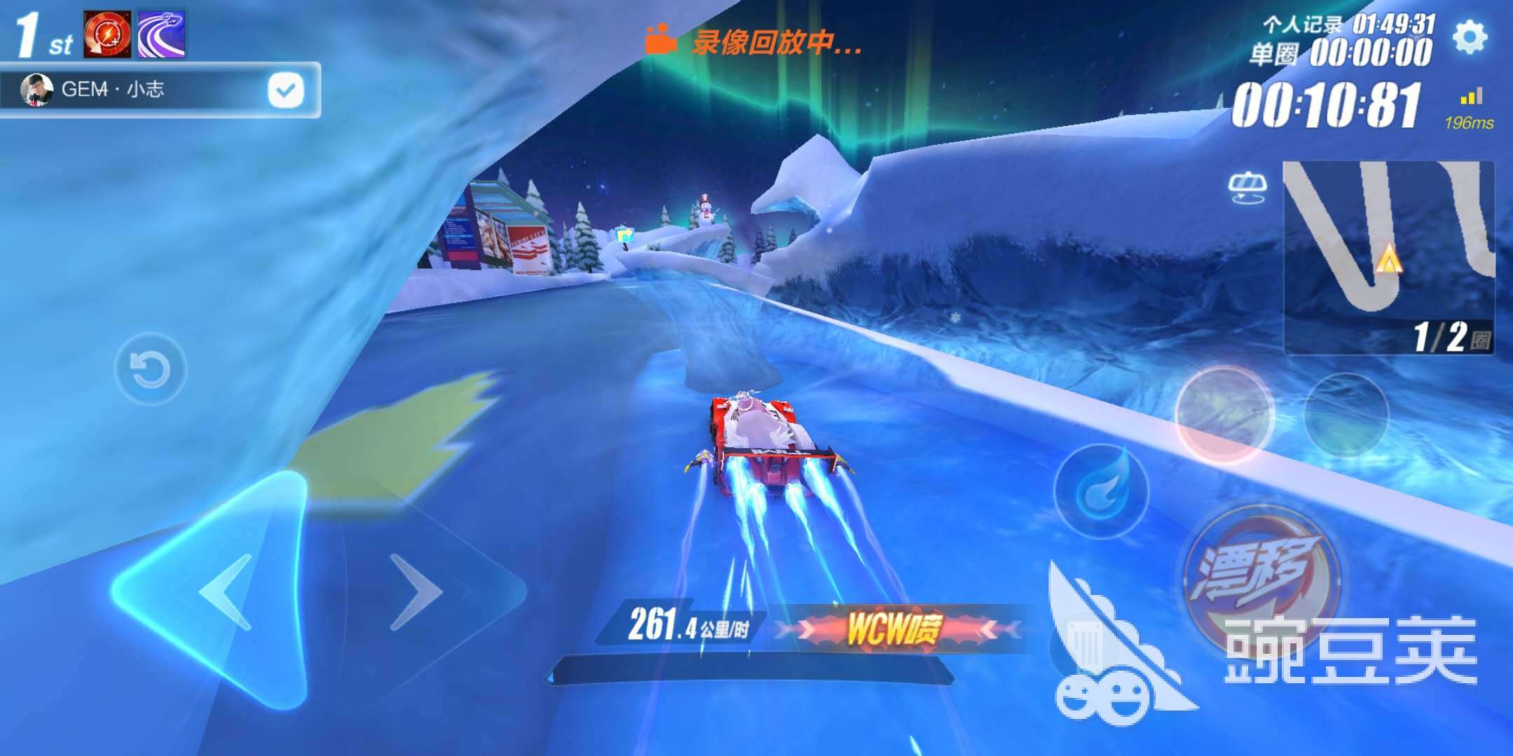 第八步:之后就會(huì)遇見一個(gè)彎道在這里我們用甩尾漂移銜接cww噴,然后快速通過這條路,并且在這里要記住的就是才上加速帶,還有按空噴、落地噴的時(shí)間要稍微慢一些,這樣會(huì)起到一個(gè)氮?dú)庋永m(xù)的作用。之后就來到了第一圈的終點(diǎn),第二圈跟第一圈跑法都是一樣的。
