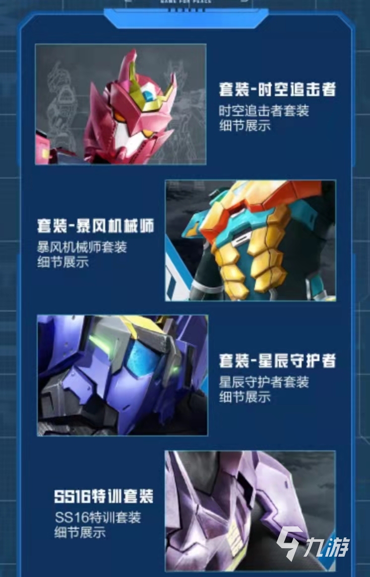 和平精英11月16日更新后將正式上線SS16賽季手冊-正義戰(zhàn)士,和平守護。因為SS16賽季的主體是機甲戰(zhàn)士,所以SS16賽季手冊一共推出了3款機甲套裝。其中紅色的機甲雷霆追擊,時空守護,名為時空追擊者。整體都是紅色的配色,除了胸前有些許黑色非常的帥氣,更像是致敬經(jīng)典。第二套名為暴風機械師,這套機甲是不帶頭盔的,整體配色是綠色,給人一種很矯健的感覺。最后一套就是藍紫色的星辰守護者,機械感十足。