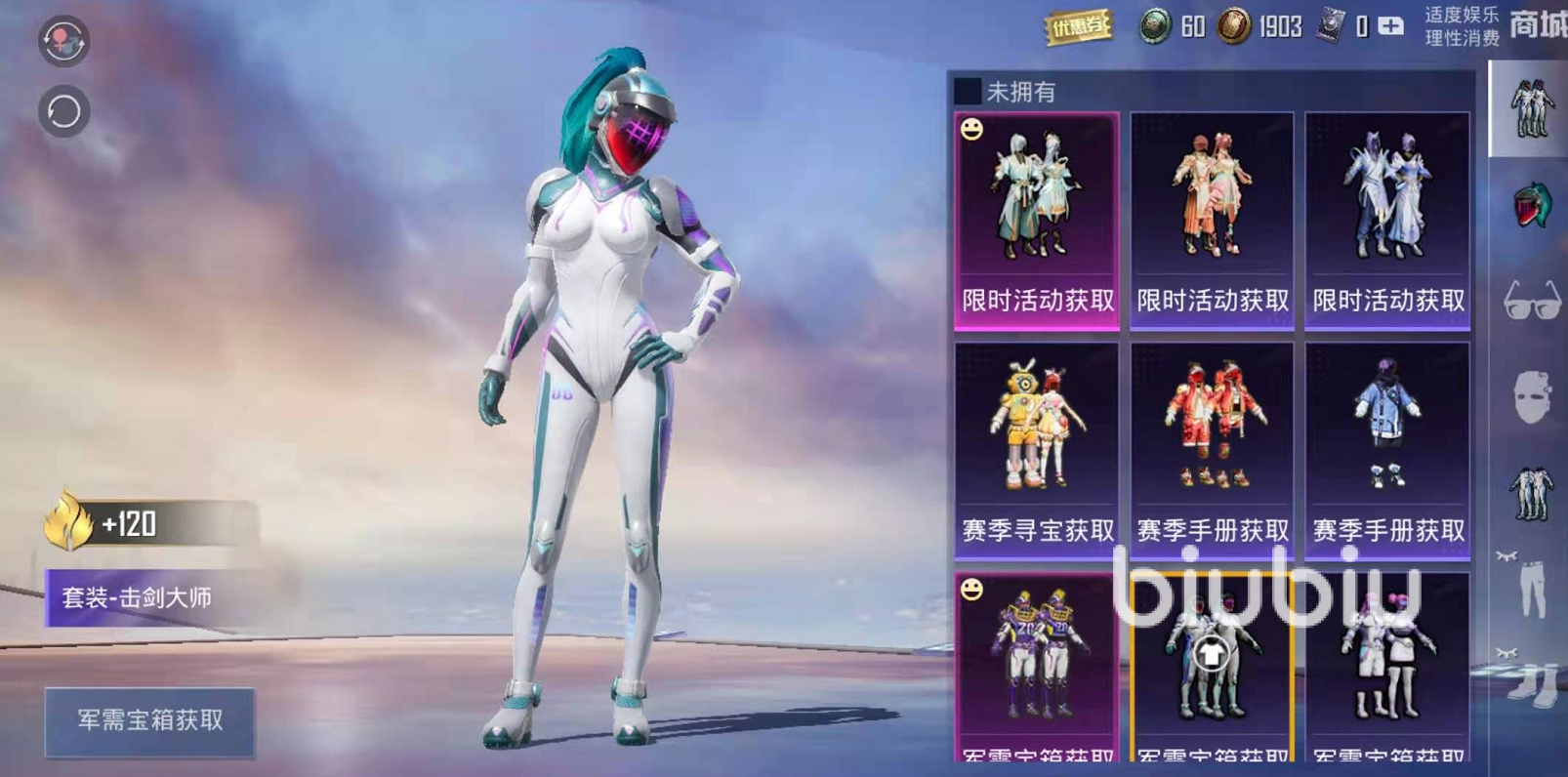 擊劍大師這套皮膚總的來(lái)說(shuō)外觀還是非常炫酷的,雖然上身和下裝基本都是白色基調(diào)為主,但是一些細(xì)節(jié)上的凹凸設(shè)計(jì)以及藍(lán)、紫的搭配,讓整件套裝顯得更加有科技感。頭盔的設(shè)計(jì)是最炫酷的一個(gè)環(huán)節(jié),閃閃發(fā)光的條紋充滿(mǎn)了未來(lái)科技感。在軍需寶箱中,玩家們除了可以開(kāi)出紫色品質(zhì)的頂級(jí)套裝皮膚外,還能獲得滑翔傘或是槍械的皮膚。