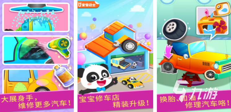 在寶寶修車店游戲中,各式各樣故障車輛等待維修,小朋友先仔細(xì)檢查車輛外觀,找出刮痕凹陷,打開引擎蓋,查看零件是否松動(dòng)、損壞,維修時(shí)拿起扳手?jǐn)Q緊螺絲,用螺絲刀更換壞掉零件,給輪胎充氣、換位,完成修理后還能給車輛清洗、打蠟,讓車煥然一新。