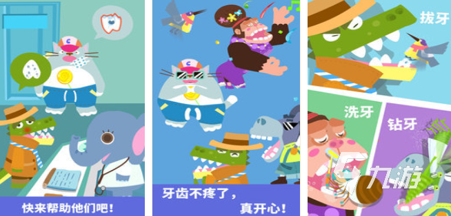 寶寶小牙醫(yī)游戲中,帶孩子走進(jìn)牙科診所體驗(yàn)牙醫(yī)工作,游戲中,可愛小動(dòng)物們牙齒出現(xiàn)問題前來就診,小朋友先使用專業(yè)工具,仔細(xì)檢查牙齒找出齲齒、牙結(jié)石,針對(duì)齲齒用牙鉆去除腐壞部分,再填充材料,清理牙結(jié)石則需借助洗牙器,治療結(jié)束后教導(dǎo)小動(dòng)物正確刷牙方法。