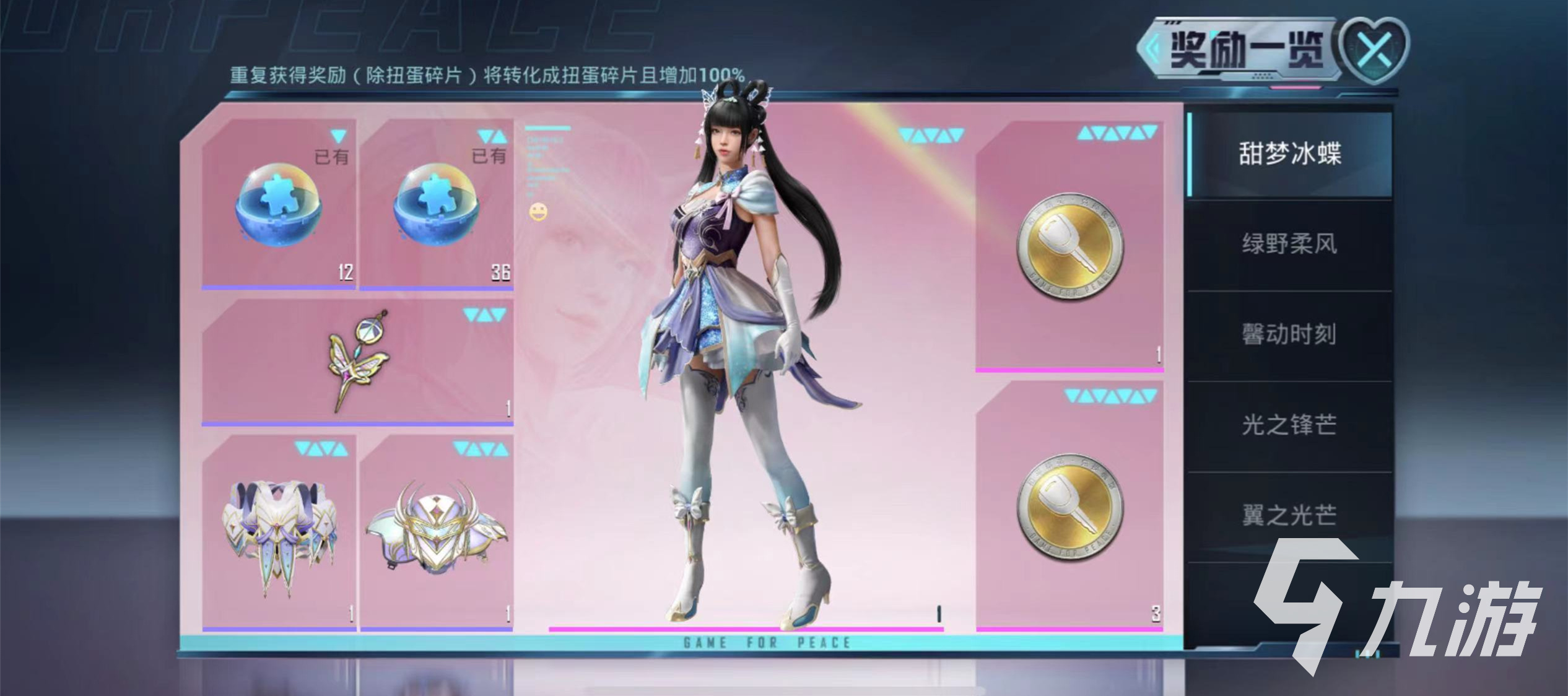 套裝分別有甜夢(mèng)冰蝶,綠野柔風(fēng)以及馨動(dòng)時(shí)刻,分別是藍(lán)色系綠色系以及粉色系列,當(dāng)玩家準(zhǔn)備好以后就可以啟動(dòng)扭蛋機(jī),這時(shí)能隨即獲得一個(gè)扭蛋,每個(gè)扭蛋的等級(jí)會(huì)對(duì)應(yīng)著領(lǐng)取相對(duì)的獎(jiǎng)勵(lì),玩家可以選擇繼續(xù)追加,能再次獲得一個(gè)扭蛋,當(dāng)追加得到的扭蛋類型和當(dāng)前扭蛋一樣時(shí),就可以為玩家的扭蛋提升等級(jí)獎(jiǎng)勵(lì),當(dāng)追加得到的扭蛋類型和當(dāng)前扭蛋不一樣時(shí),本輪的活動(dòng)就結(jié)束了,玩家就要重新積攢幸運(yùn)值了。