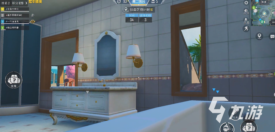 玩家進(jìn)入躲貓貓廚房之后,在房間的洗手臺(tái)上,可以發(fā)現(xiàn)一個(gè)酒瓶。接下來,玩家朝著酒瓶變身。因?yàn)檫@個(gè)東西體積很小,其他人不容易發(fā)覺的。