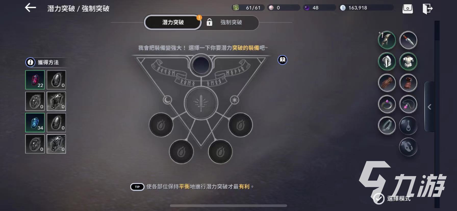 2、穿戴煉金石,頂級(jí)煉金石為紅色突破的煉金石,除了提供大量攻擊力、防御力之外,所有裝備突破階段+3。